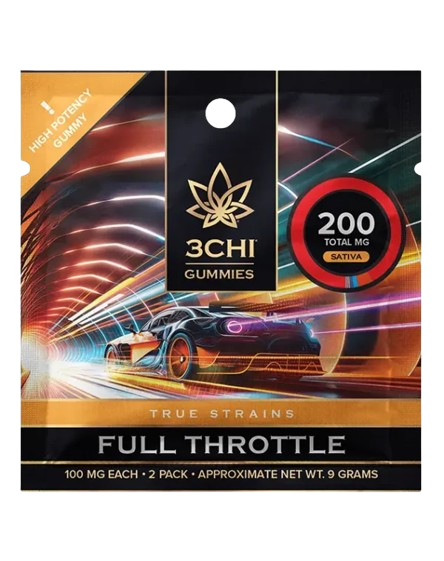 3 Chi Full Throttle HHC Gummies with 100mg HHC. These HHC gummies are an exhilarating experience, designed for those who crave an energetic, full-speed-ahead adventure. Contains 20 per pack.