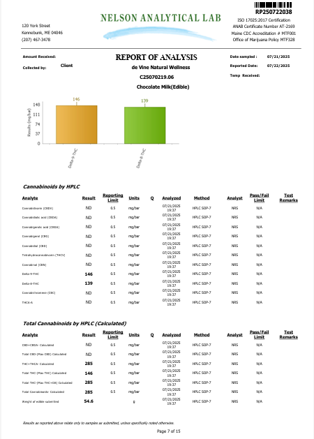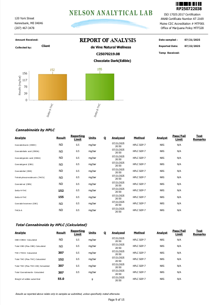 We craft each bar in small batches to maintain freshness and quality. Also, we lab-test every bar to ensure potency, purity, and safety. For example, this guarantees that each square delivers exactly the advertised 150mg Delta 9 THC and 150mg Delta 8 THC. For trusted information about Delta 9 THC, see Leafly.