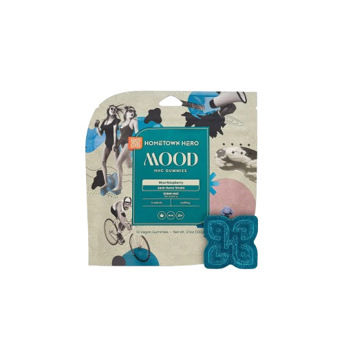 Enjoy a euphoric lift with Home Town Hero Mood HHC Gummies. Each 50mg gummy blends HHC with live rosin for long-lasting, mood-elevating effects. Available in Strawberry or Blue Raspberry.