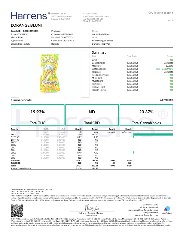 Not Ya Son’s Weed THCa Blunts provide a smooth, flavorful smoke for experienced cannabis users. Each pack contains two hand-rolled blunts made with top-shelf THCa flower. They burn evenly and deliver strong, consistent effects. In addition, these premium blunts highlight natural terpenes for a rich taste. For more information about THCa, see Leafly’s THCa Guide.