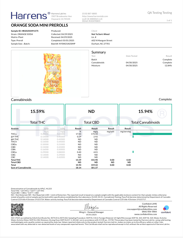 - Please choose product options for Not Ya Son's Weed THCa Mini Preroll.
