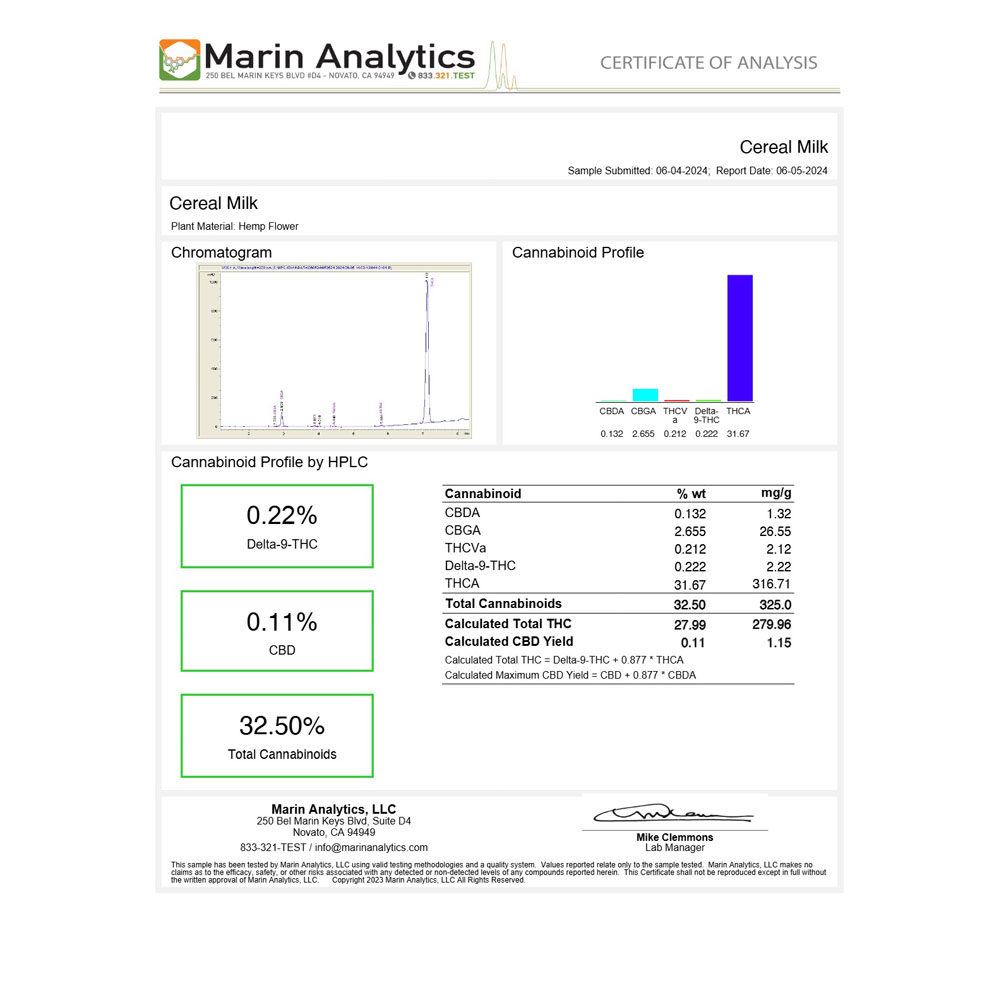 Cereal Milk THCa Flower is a potent 31.67% THCa potent herb. If you are looking for a delightful start to your day, Cereal Milk has just the answer! If you want to feel inspired and clear-headed, with sensations of happiness and infectious laughter, you definitely want to give this a try! With delightful an array of flavors cheerful and euphoric cerebral effects, this will be your go to flower!