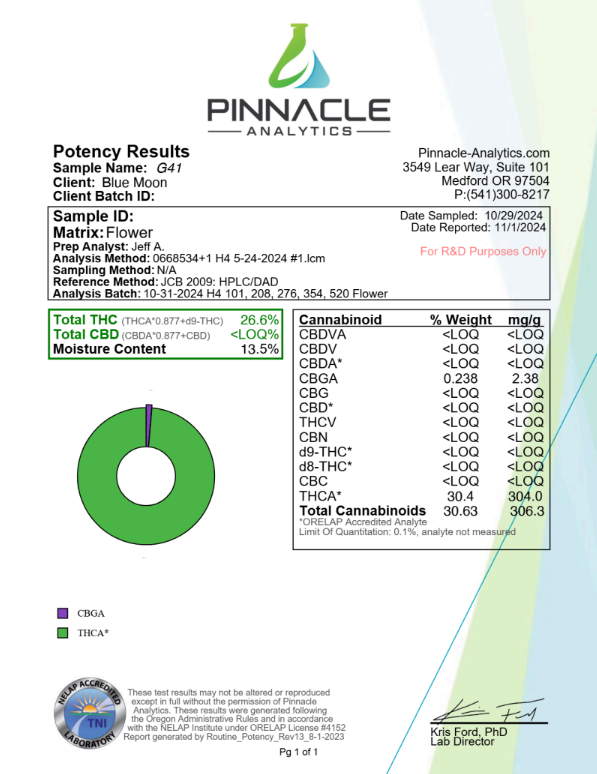THCa G41 Gelato is a premium hybrid flower offering a relaxing body high with clear mental focus. Sweet, earthy flavors with hints of lavender and pine make it a flavorful, potent choice for experienced users.