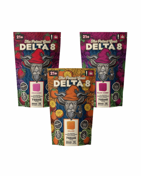 The Potent Goat’s Gummies Hemp derived Delta 8 packs with 750mg come in 2 Delicious flavors: